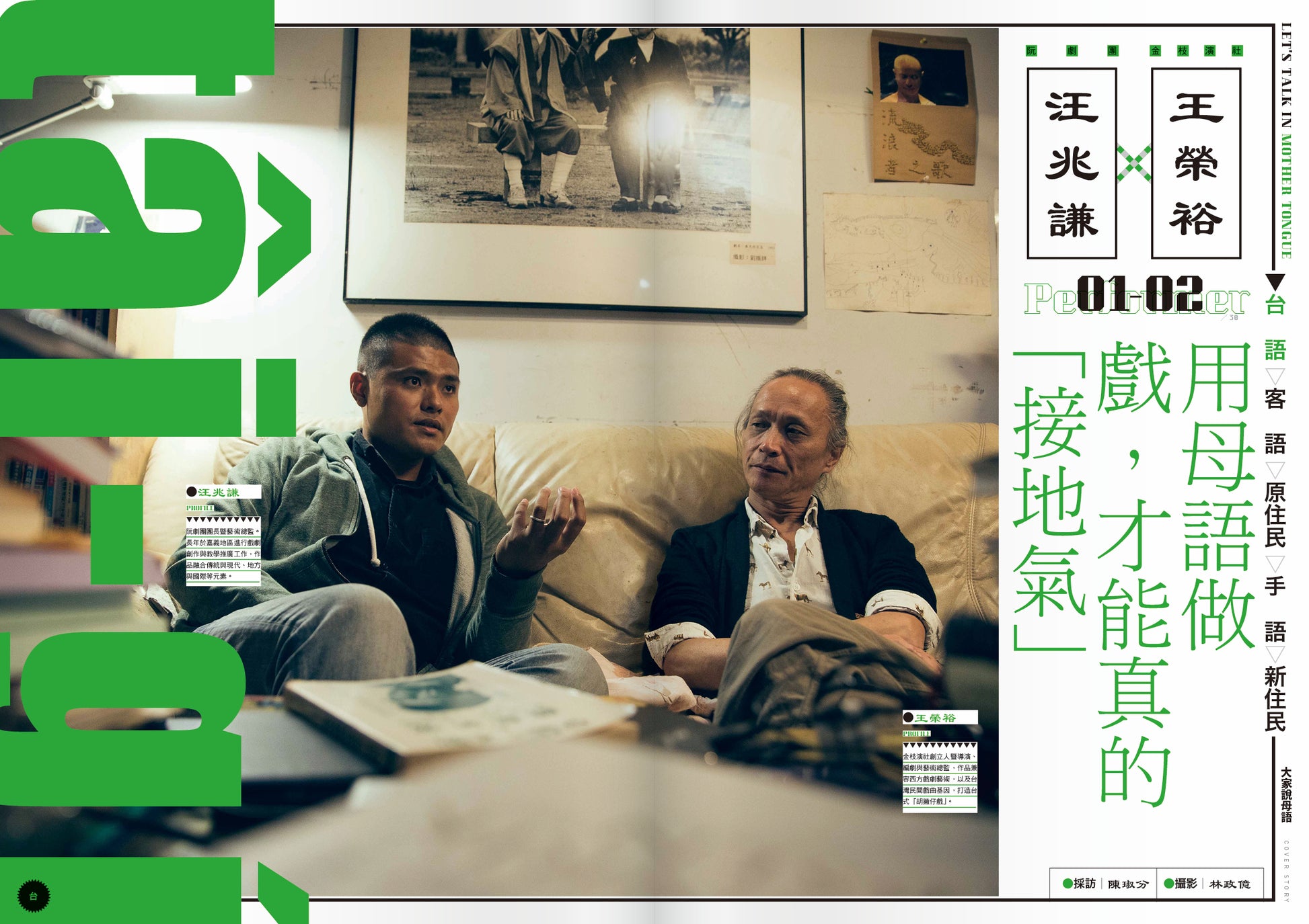 特此,封面故事將介紹30位為母語/族語奮戰的音樂人、詩人、劇場人、語言學家、人類學家、運動推行者、節目主持人、及部落耆老、年輕人等,從這些故事去了解為何說母語/族語是重要的?又或者,如果哪一天母語/族語乃至本土語言完全消失,哪些庶民文化也將會隨之消逝?